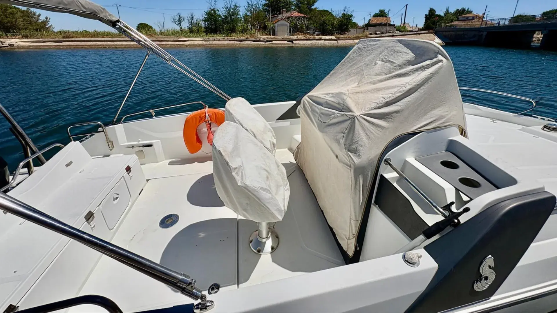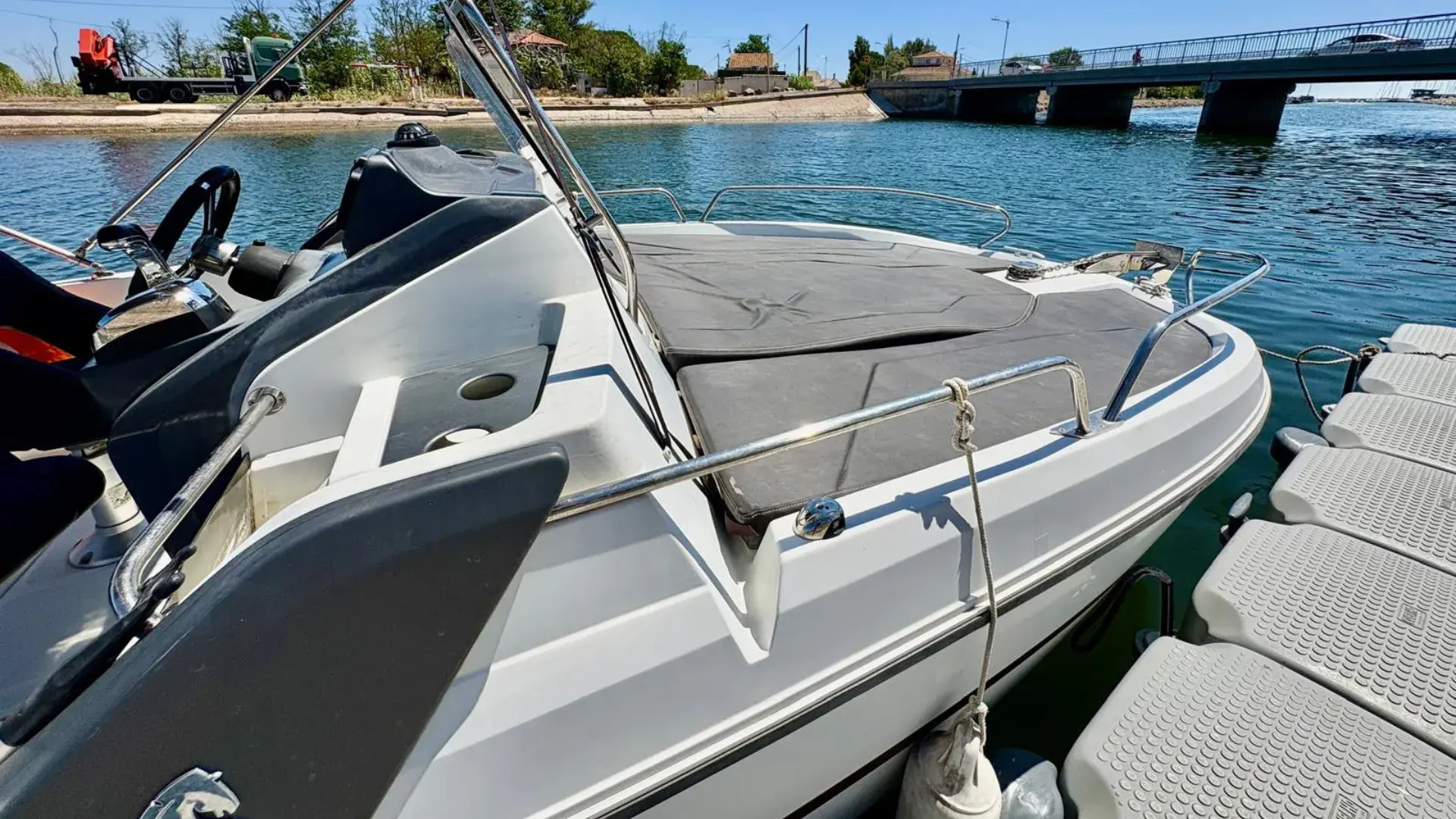 2 couchages, combiné GPS/Traceur/Sondeur, bains de soleil avant et arrière, douchette de cockpit …