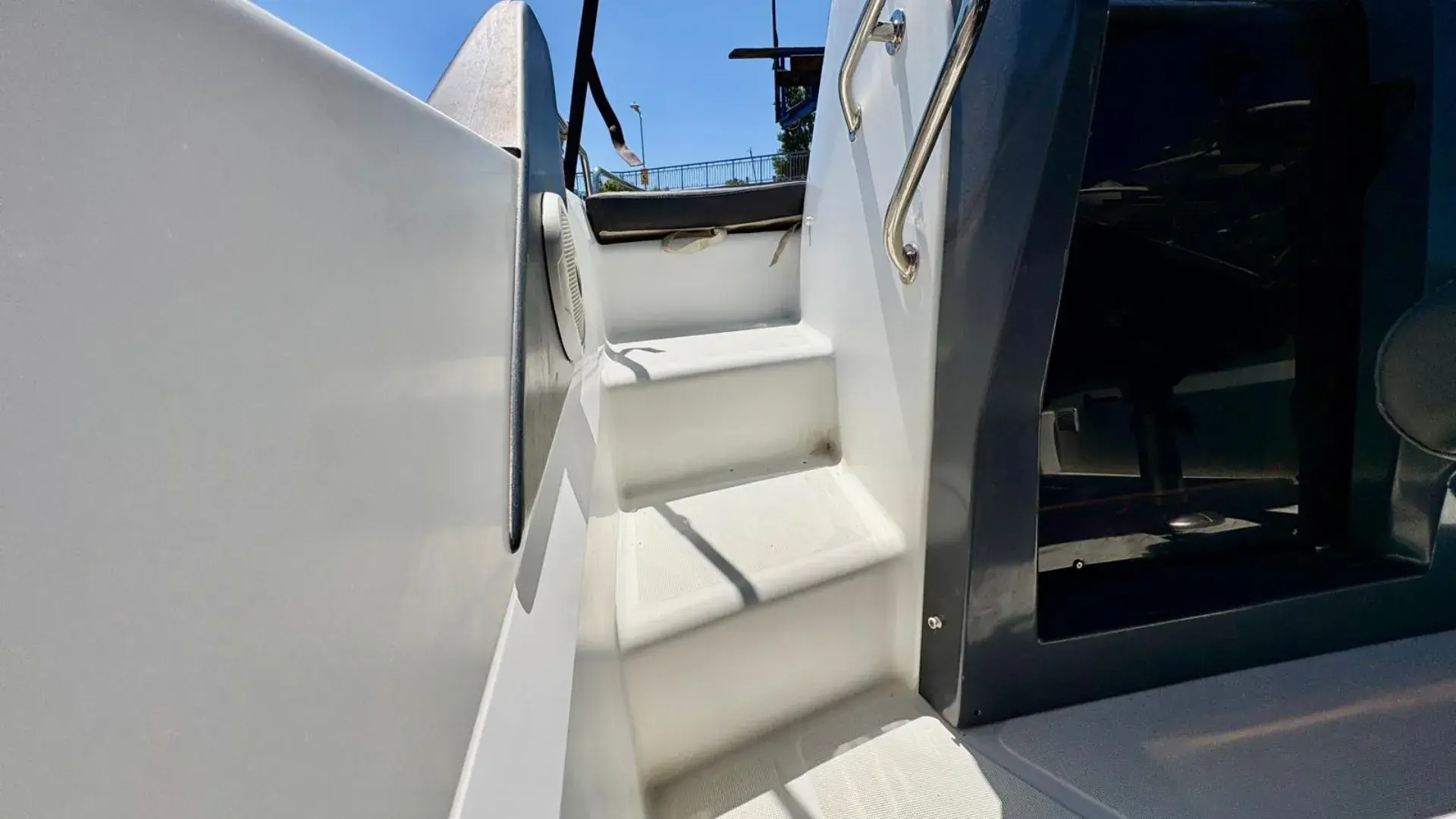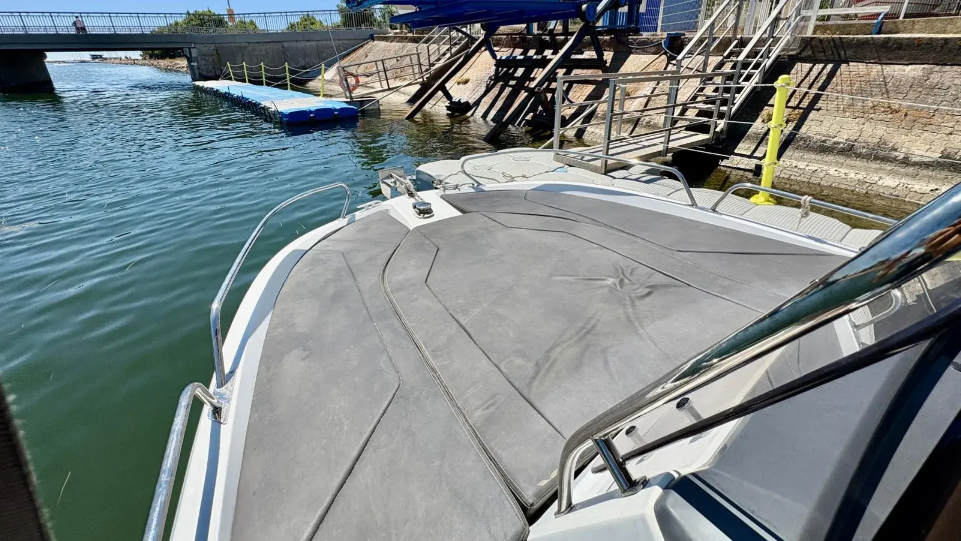 Infos extérieur : Plateformes de bain x2 Haut-parleurs x2 Guindeau électrique de 2024 Housses de siège x2 Mât de ski